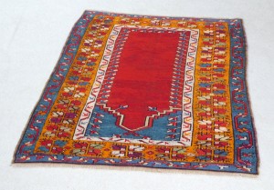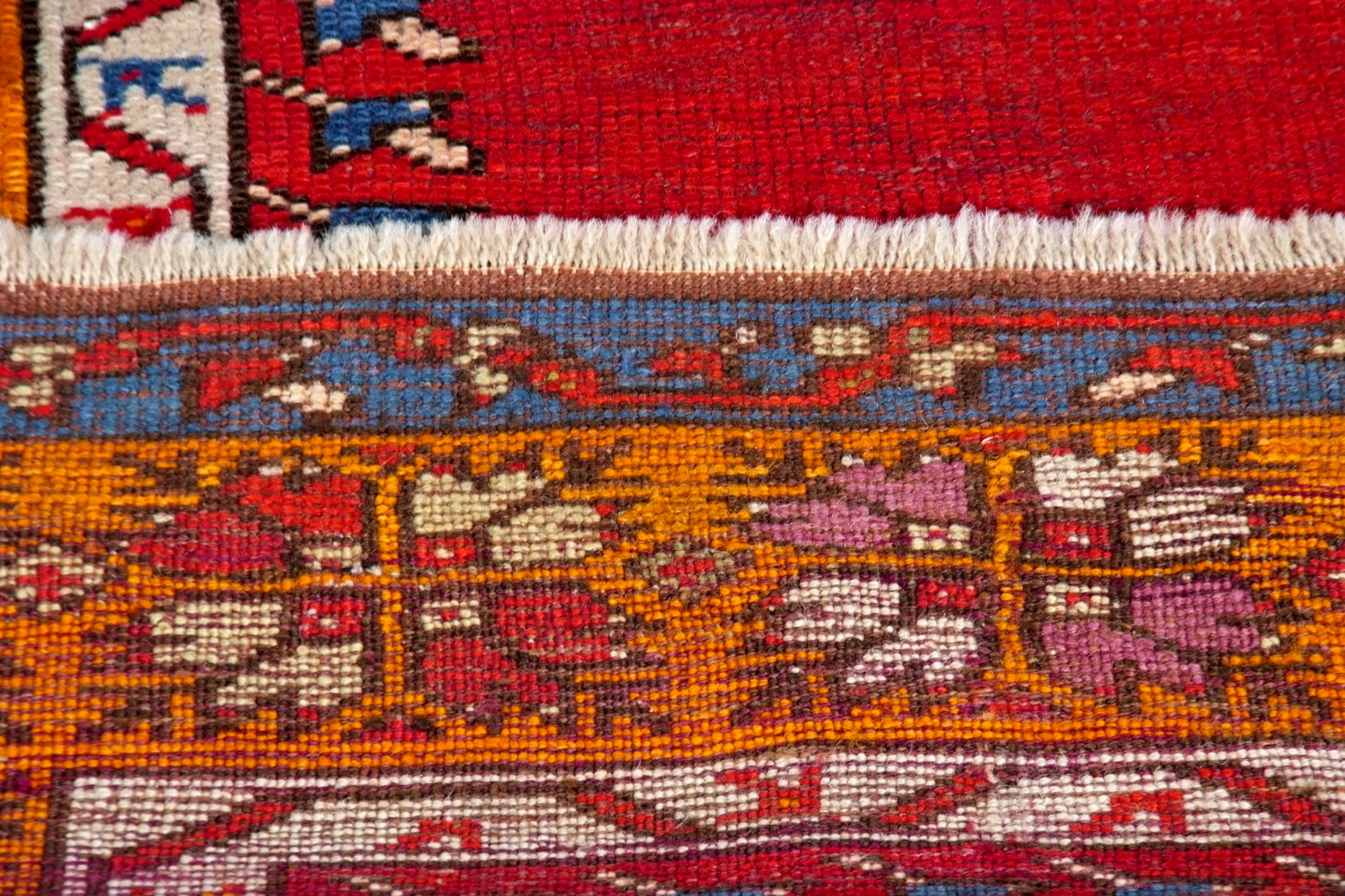 Antico tappeto anatolico da preghiera. Epoca 1900 ca. Buono stato di conservazione. Piccole corrosioni e minimi interventi di restauro.