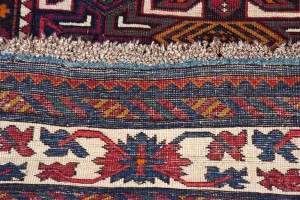 Tappeto antico caucasico Kuba, 1900 ca. DIsegno a tutto campo, ottimo stato di conservazione evidenti corrosioni delle tonalità marroni.