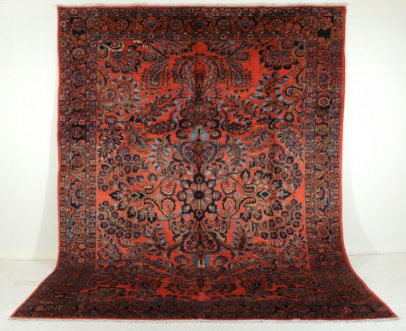 I tappeti di Lilian sono particolarmente interessanti dal punto di vista decorativo poichè seganano una sorta di “rottura” degli schemi tradizionali nella concezione e nella produzione del tappeto persiano. In questi esemplari spesso non troviamo il classico medaglione centrale polilobato o dagli schemi decorativi tradizionali. Nei tappeti di LIlian troviamo grandi bouquet di fiori che riempiono la campitura generalmente su fondo rosa. Ottimo lo stato di conservazione, epoca 1900 circa. c